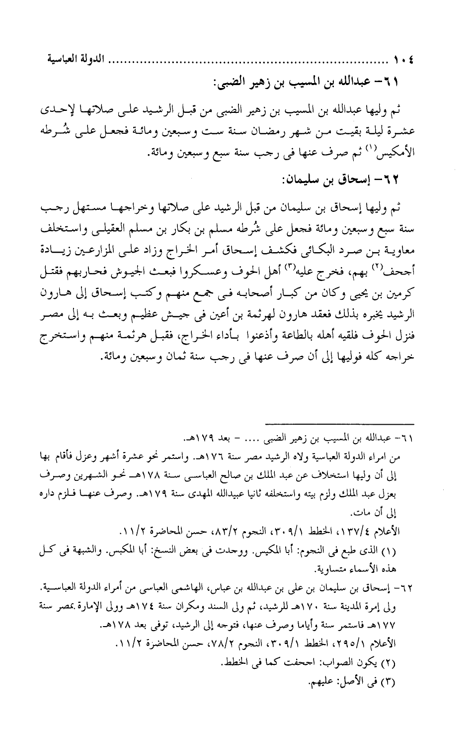ثمَّ ولِيَها عبد الله بْن المُسيَّب بْن زُهَير الضَّبّي من قِبَل الرشيد عَلَى صلاتها لإحدى عشرة ليلة بقِيَت من شهر رمضان سنة ست وسبعين ومائة، فجعل عَلَى شُرَطه أبا المكيس، ثمَّ صُرف عَنْهَا فِي رجب سنة سبع وسبعين ومائة.