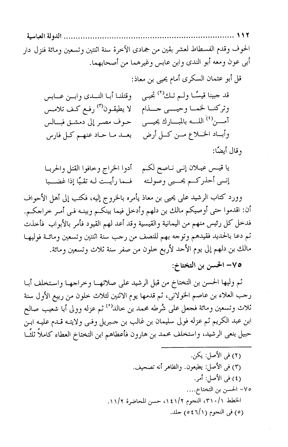 يَا قَيْسَ عَيْلانَ إِنِّي نَاصِحٌ لكُمُ ... أَدُّوا الخَراجَ وخَافُوا القَتْلَ والحَرَبَا