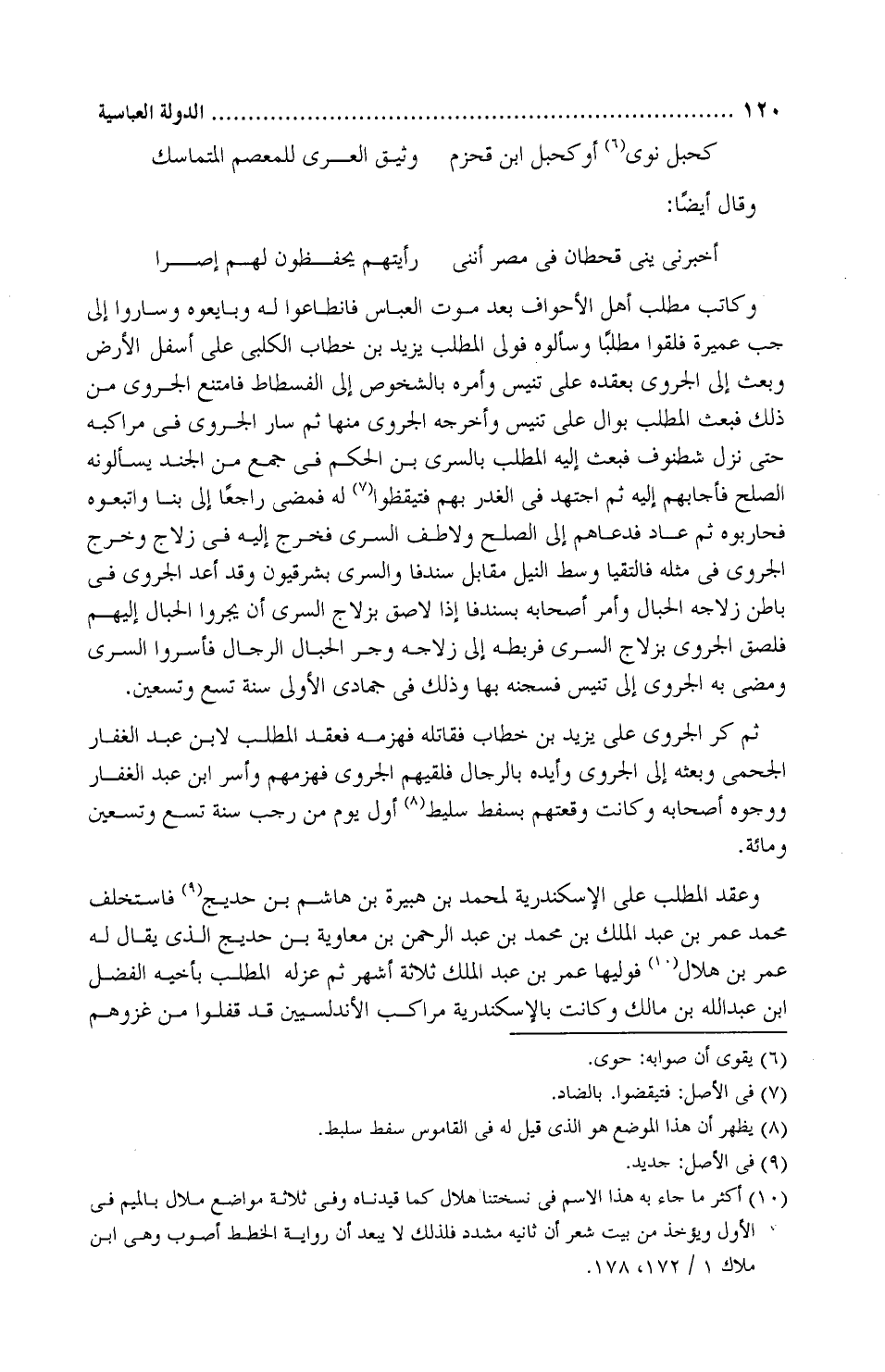 وكاتب مُطَّلِب أهل الأَحواف بعد موت الْعَبَّاس، فانطاعوا لَهُ وبايعوه وساروا إلى جُبّ عَميرة، فلقُوا مُطَّلِبًا وسأَلوه، فولَّى المُطَّلِب يزيد بْن خَطَّاب الكَلْبيّ عَلَى أسفل الأَرض، وبعث إلى الجَرَويّ بعقده عَلَى تِنِّيس وأمره بالشُّخوص إلى الفُسطاط، فامتنع الجَرَويّ من ذَلكَ، فبعث المُطَّلِب بوالٍ عَلَى تِنّيس وأخرجه الجَرَويّ منها، ثمَّ سار الجَرَوي فِي مراكبه حتى نزل شَطَنُوف، فبعث إِلَيْهِ المُطَّلِب بالسَّريّ بْن الحكَم فِي جمع الجُند يسأَلونه الصُّلح، فأجابهم إِلَيْهِ، ثمَّ اجتهد فِي الغدر بهم، فتيقَّظوا لَهُ، فمضى راجعًا إلى بَنَا واتّبعوه، فحاربوه، ثمَّ عاد فدعاهم إلى الصُّلح ولاطف السَّريّ، فخرج إِلَيْهِ فِي زَلَّاج وخرج الجَرَويّ فِي مِثله، فالتقَيا وسط النيل مقابل سَنْدَفا والسَّريّ بشَرقيُون، وقد أَعدّ الجَرَويّ فِي باطن زَلَّاجه الحِبال، وأمر أصحابه بسَنْدَفا إذا لاصف بِزَلَّاج السَّريّ أن يجرّوا الحِبال إليهم، فلصِق الجَرَويّ بزَلَّاج السَّري، فربطه إلى زَلاجه وجرَّ الحِبالَ، فأسروا السَّريّ، ومضى بِهِ الجَرَويّ إلى تِنِّيس، فسجنه بها وذلك فِي جمادى الأولى سنة تسع وتسعين.
