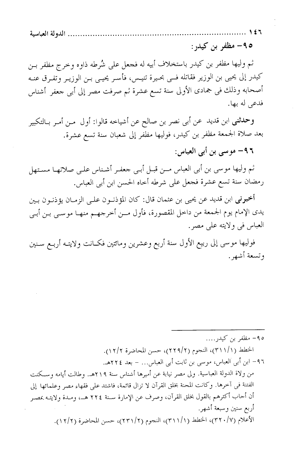 ثمَّ ولِيَها مُظفَّر بْن كَيْدُر باستخلاف أَبِيه لَهُ فجعل عَلَى شُرَطه ذاوَه، وخرج مُظفَّر بْن كَيْدُر إلى يحيى بْن الوَزير، فقاتله فِي بُحيرة تِنِّيس فأُسر يحيى بْن الوزير، وتفرَّق عَنْهُ أصحابه وذلك فِي جمادى الأولى سنة تسع عشرة، ثمَّ صُرفت مصر إلى أَبِي جَعْفَر أَشِناس، فدُعي لَهُ بها.