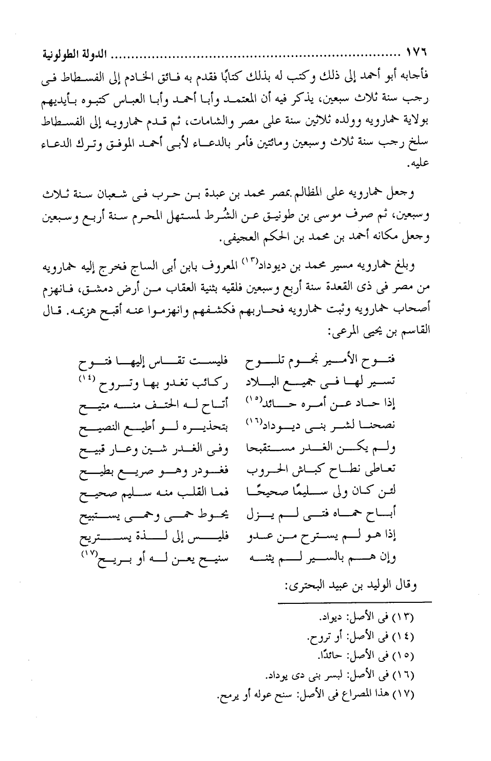 وخرج خُمارَوَيه إلى الشام يوم الثلاثاء لسبع عشرة من ذي القعدة سنة سبع وسبعين، ومات أَبُو أحمد المُوفَّق سنة ثمان وسبعين، وعقد العهد لابنه الْعَبَّاس، ثمَّ تُوفّي المُعتمِد لعشر بقينَ من رجب سنة تسع وسبعين.