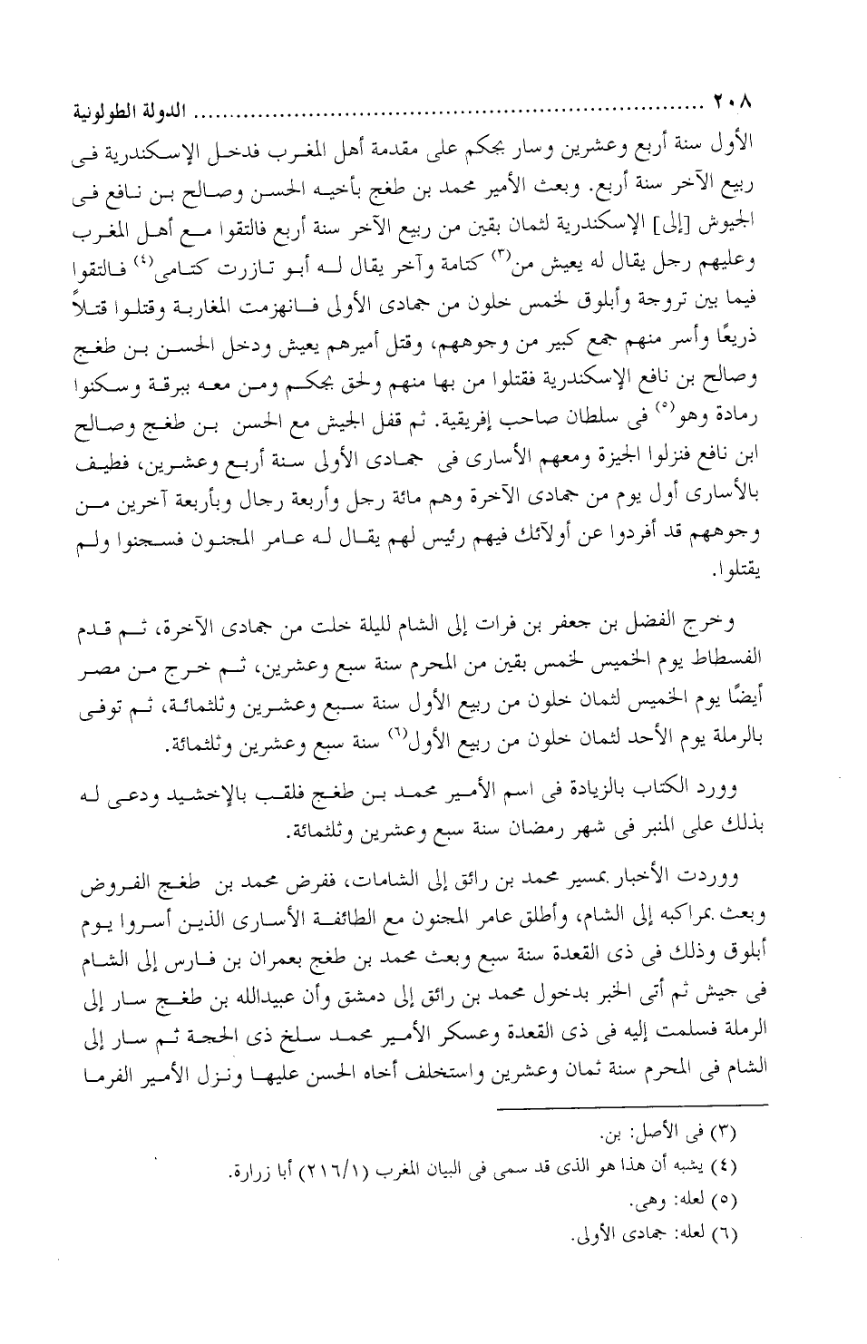 الأوَّل سنة أربع وعشرين، وسار بجكم عَلَى مقدَّمة أهل المغرِب، فدخل الإسكندرية فِي ربيع الآخر سنة أربع، وبعث الأمير محمد بْن طُغْج بأخيه الْحَسَن، وصالح بْن نافع فِي الجيوش إلى الإسكندريَّة لثمان بقينَ من ربيع الآخر سنة أربع، فالتقَّوا مَعَ أهل المغرب وعليهم رجُل، يقال لَهُ: يعيش من كُتامة، وآخر، يقال لَهُ: أَبُو تازرت كُتاميّ، فالتقَوا فيما بين تَرُوجة، وأبلُوق لخمس خلونَ من جمادى الأولى، فانهزمت المغاربة، وقُتِلوا قتلًا ذريعًا، وأُسِر منهم جمع كبير من وجوههم، وقُتِل أميرهم يَعِيش، ودخل الْحَسَن بْن طُغْج، وصالح بْن نافع الإسكندريَّة، فقتلوا مَن بها منهم ولحِق بجكم ومن معه ببَرْقَة، وسكنوا رَمادة وهو فِي سُلطان صاحب إِفرِيقيّة، ثمَّ قفل الجيش مَعَ الْحَسَن بْن طُغْج، وصالح بْن نافع، فنزلوا الجِيزة ومعهم الأُسارى فِي جمادى وهم مائة رجُل وأربعة رجال وبأربعة آخرين من وجوههم، قد أُفرِدوا عَنْ أولئك فيهم رئيس لهم، يُقال لَهُ: عامر المجنون، فسُجِنوا ولم يُقتَلوا، وخرج الفَضل بْن جَعْفَر بْن فُرات إلى الشام لليلة خلت من جمادى الآخرة، ثمَّ قدِم الفُسطاط يوم الخميس لخمس بقينَ من المحرَّم سنة سبع وعشرين وثلاثمائة، ثمَّ تُوفّي بالرَّملة يوم الأحد لثمان خلونَ من ربيع الأوَّل سنة سبع وعشرين وثلاثمائة.