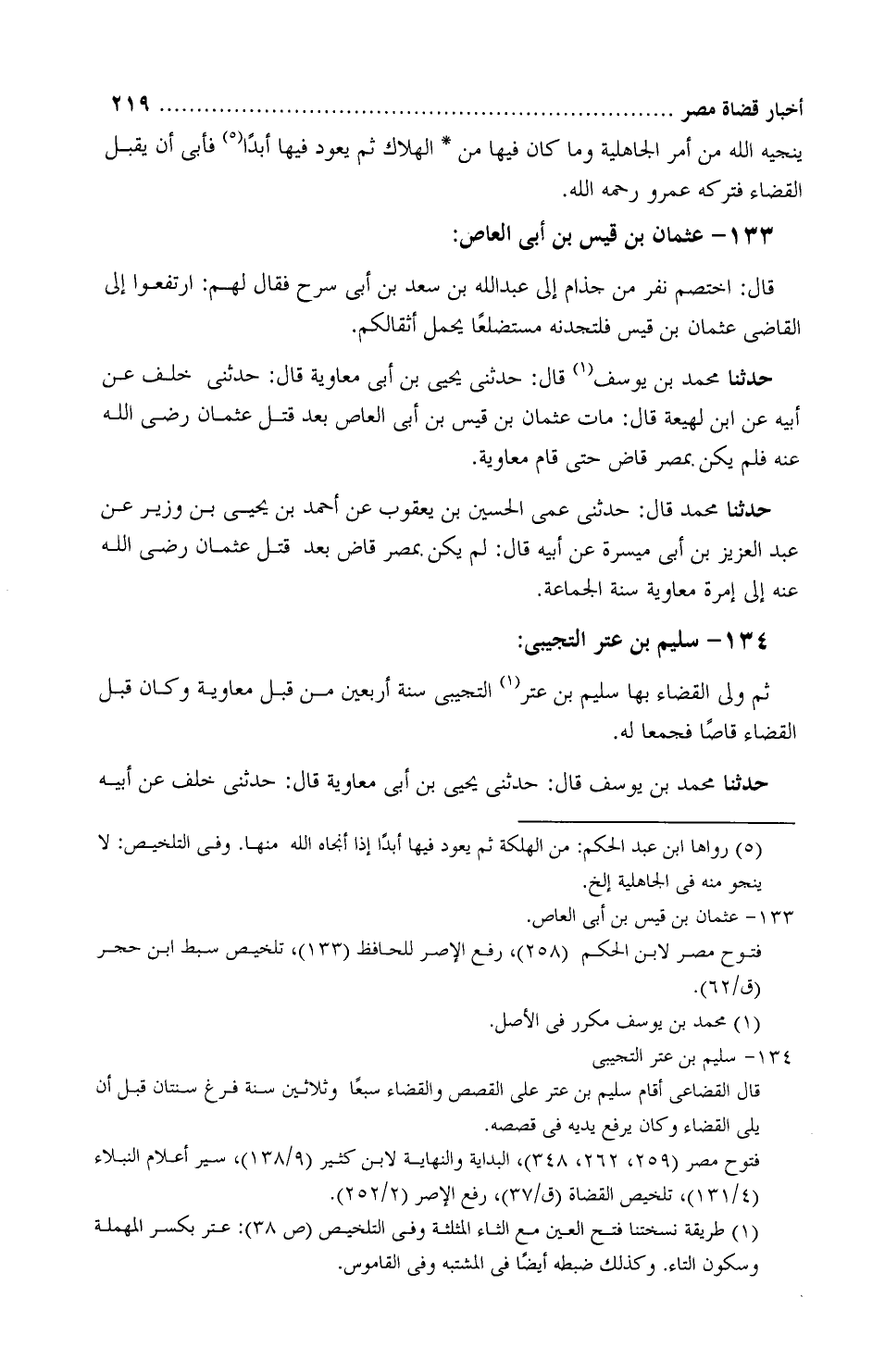 حَدَّثَنَا محمد بْن يوسف، قَالَ: حَدَّثَنِي يحيى بْن أَبِي مُعاوية، قَالَ: حَدَّثَنِي خلَف، عَنْ أبيه، عَن ابن لَهِيعة، قَالَ: «مات عثمان بْن قَيس بْن أَبِي العاص بعد قتل عثمان رَضِيَ اللَّهُ عَنْهُ، فلم يكُن بمصر قاضٍ حتى قام مُعاوية»