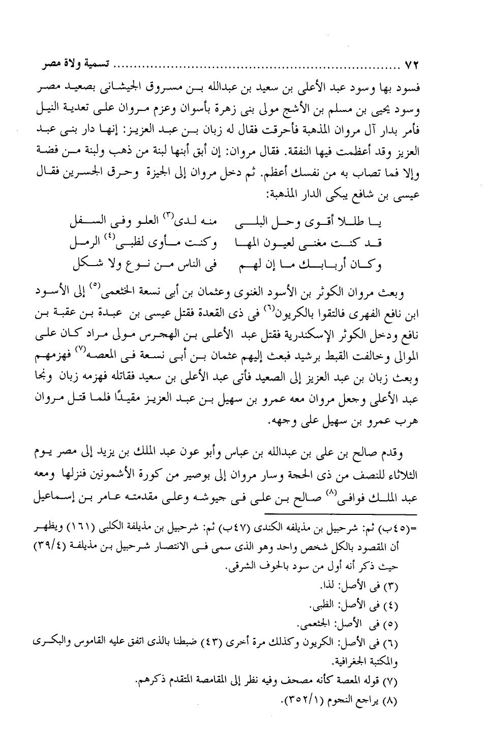 ثمَّ دخل مَرْوان إلى الجِيزة وحرق الجِسرين، فقال عيسى بن شافع يبكي الدار المذَّهبة: