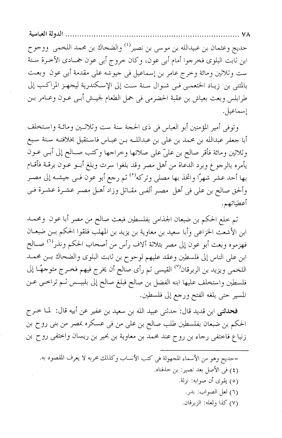 حُدَيج، وعثمان بْن عُبَيْد اللَّه بْن مُوسَى بْن نُصير، والضحَّاك بْن محمد اللَخْميّ، ووَحْوَح بْن ثابت البَلَويّ، فخرجوا أمام أَبِي عَون، وكان خروج أَبِي عَون جمادى الآخرة سنة ستّ وثلاثين ومائة، وخرج عامر بْن إسماعيل فِي جيُوشه عَلَى مُقدَّمة أَبِي عَون، وبعث بالمُثنى بْن زياد الخَثعميّ فِي شوَّال سنة ست إلى الإسكندريَّة ليجهّز المراكب إلى طَرابُلُس، وبعث بعيَّاش بْن عُقْبة الحَضْرَميّ فِي حمل الطَّعام لجيش أَبِي عَون، وعامر بْن إسماعيل.