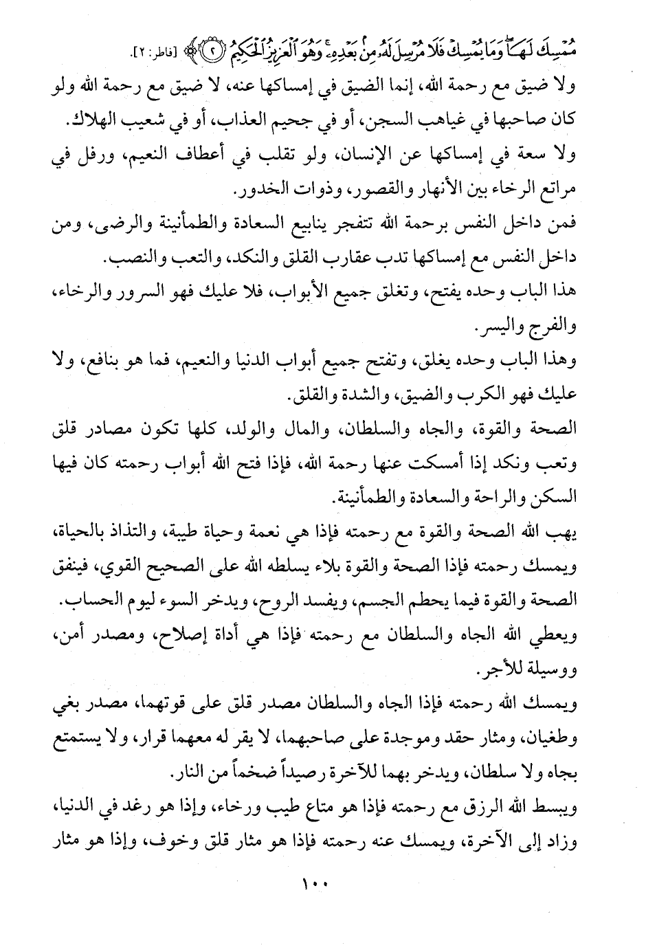 مُمْسِكَ لَهَا وَمَا يُمْسِكْ فَلَا مُرْسِلَ لَهُ مِنْ بَعْدِهِ وَهُوَ الْعَزِيزُ الْحَكِيمُ (2)} [فاطر: 2].