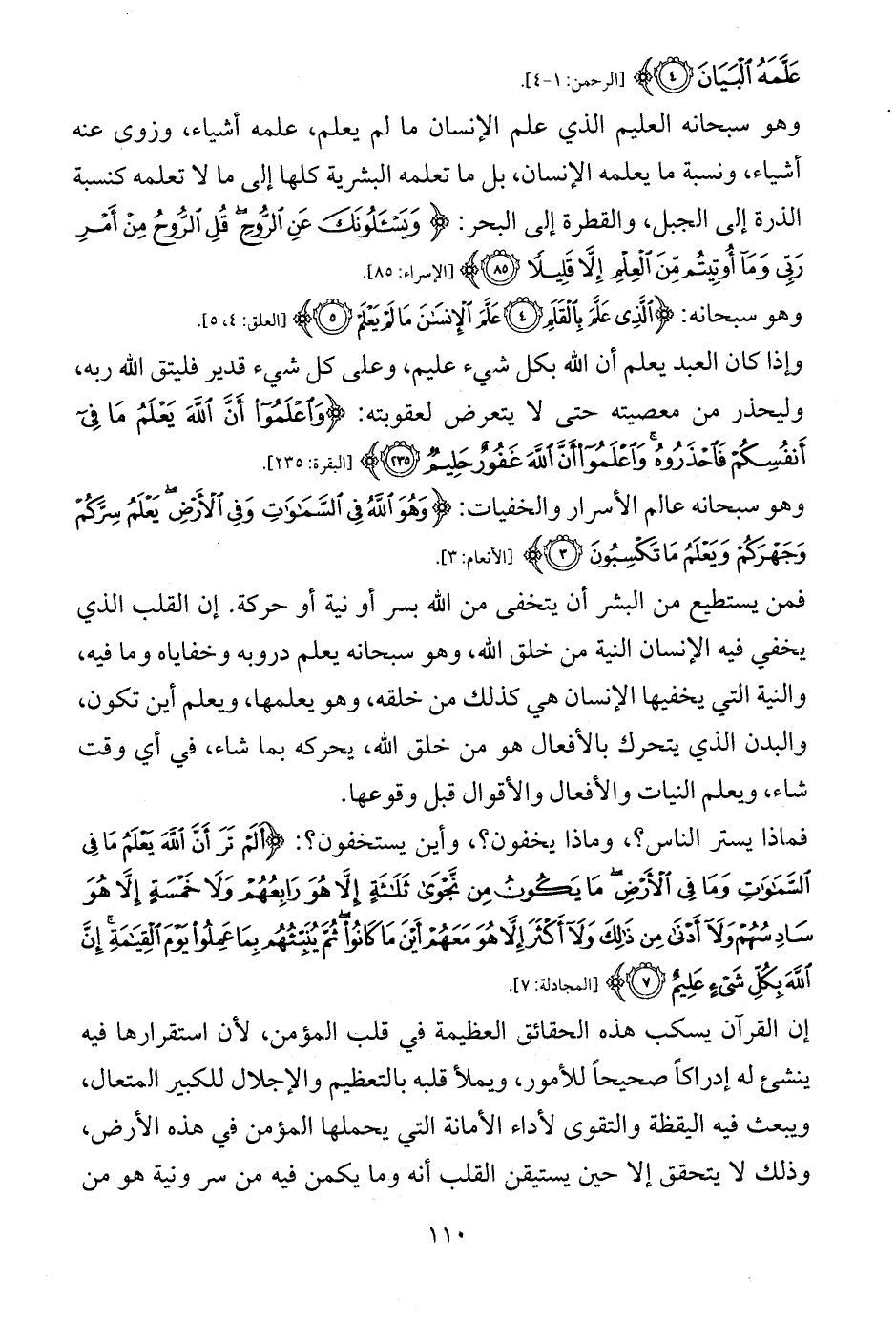 إن القرآن يسكب هذه الحقائق العظيمة في قلب المؤمن، لأن استقرارها فيه ينشئ له إدراكاً صحيحاً للأمور، ويملأ قلبه بالتعظيم والإجلال للكبير المتعال، ويبعث فيه اليقظة والتقوى لأداء الأمانة التي يحملها المؤمن في هذه الأرض، وذلك لا يتحقق إلا حين يستيقن القلب أنه وما يكمن فيه من سر ونية هو من