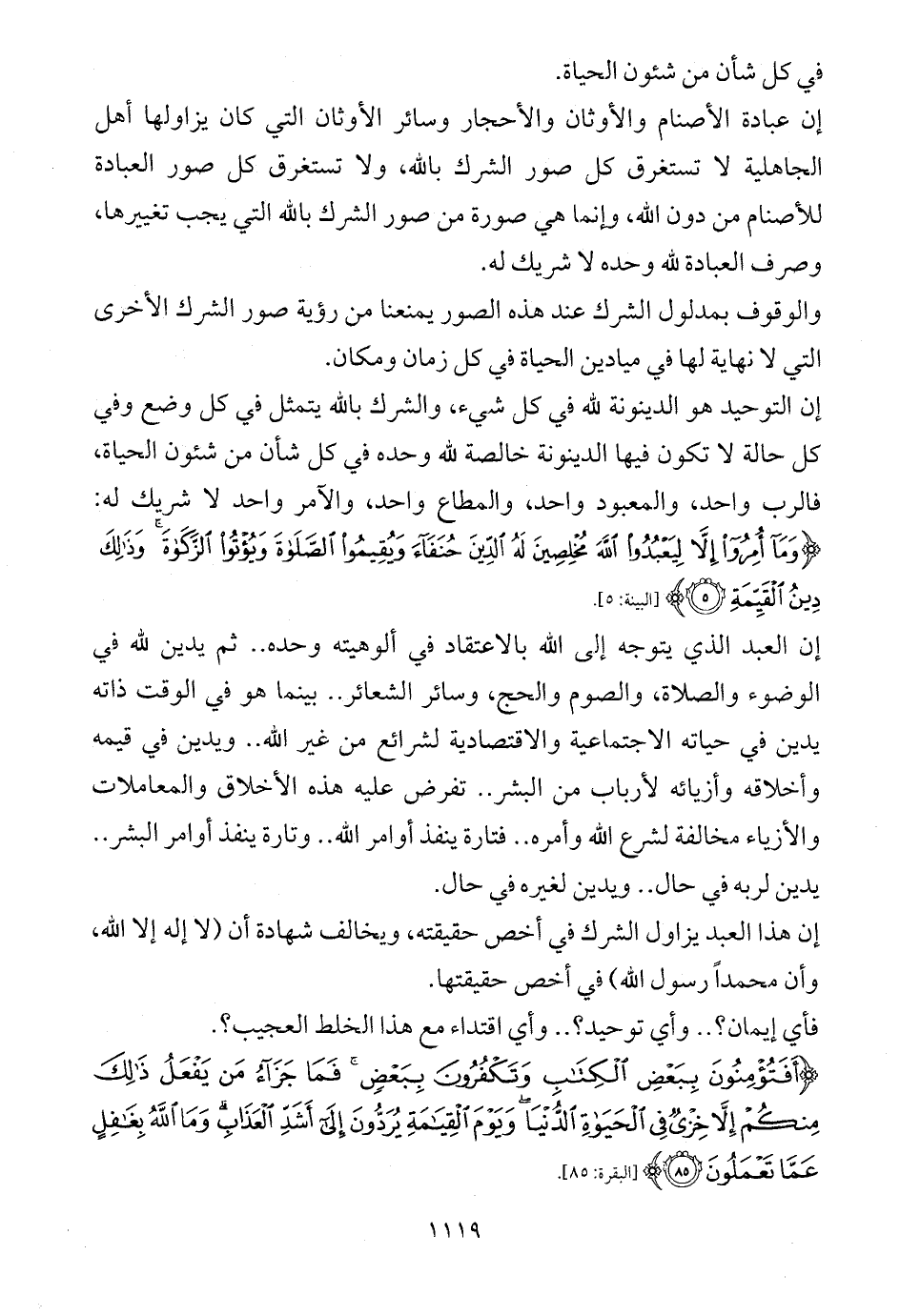 والوقوف بمدلول الشرك عند هذه الصور يمنعنا من رؤية صور الشرك الأخرى التي لا نهاية لها في ميادين الحياة في كل زمان ومكان.