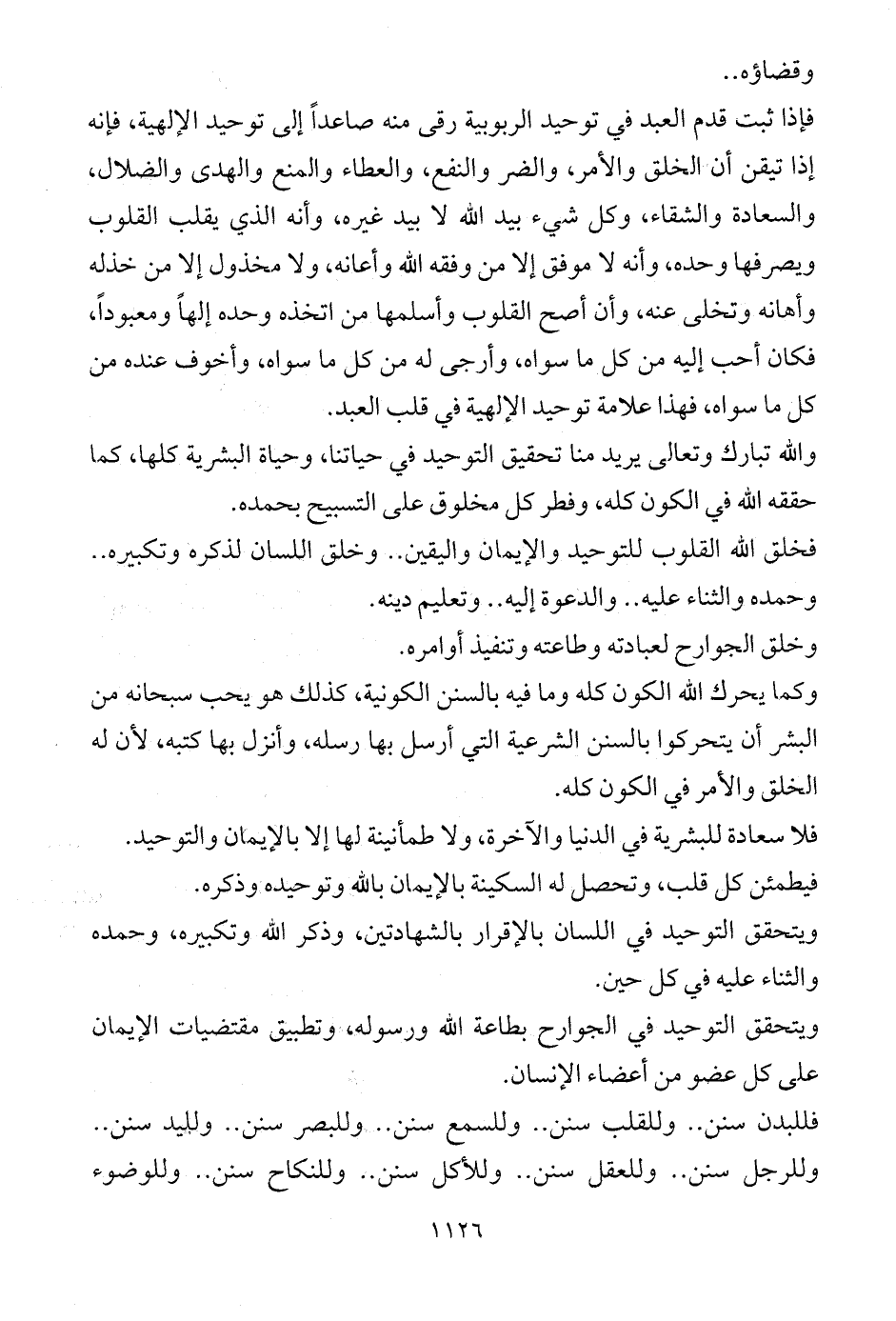 فللبدن سنن .. وللقلب سنن .. وللسمع سنن .. وللبصر سنن .. ولليد سنن .. وللرجل سنن .. وللعقل سنن .. وللأكل سنن .. وللنكاح سنن .. وللوضوء