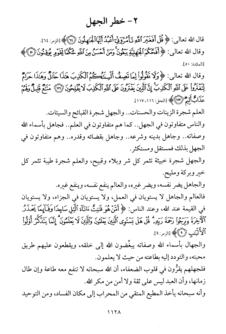 والناس متفاوتون في الجهل .. كما هم متفاوتون في العلم .. فجاهل بأسماء الله وصفاته .. وجاهل بدينه وشرعه .. وجاهل بقضائه وقدره .. وهم متفاوتون في الجهل بذلك فمستقل ومستكثر.