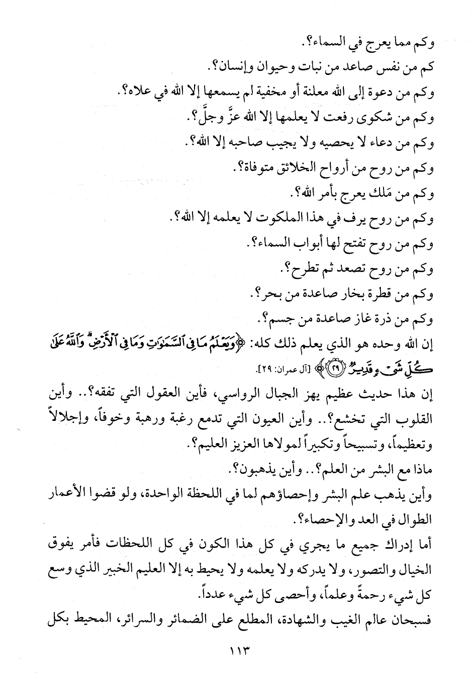 وأين يذهب علم البشر وإحصاؤهم لما في اللحظة الواحدة، ولو قضوا الأعمار الطوال في العد والإحصاء؟.