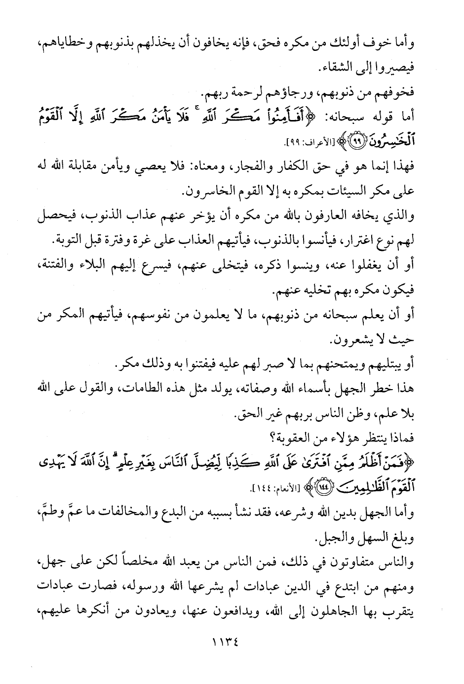 أما قوله سبحانه: {أَفَأَمِنُوا مَكْرَ اللَّهِ فَلَا يَأْمَنُ مَكْرَ اللَّهِ إِلَّا الْقَوْمُ الْخَاسِرُونَ (99)} [الأعراف: 99].