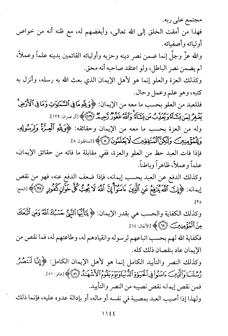 وكذلك النصر والتأييد الكامل إنما هو لأهل الإيمان الكامل: {إِنَّا لَنَنْصُرُ رُسُلَنَا وَالَّذِينَ آمَنُوا فِي الْحَيَاةِ الدُّنْيَا وَيَوْمَ يَقُومُ الْأَشْهَادُ (51)} [غافر: 51].