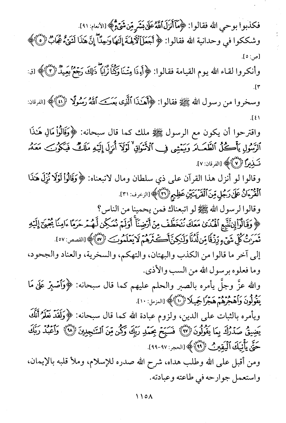 ويأمره بالثبات على الدين، ولزوم عبادة الله كما قال سبحانه: {وَلَقَدْ نَعْلَمُ أَنَّكَ يَضِيقُ صَدْرُكَ بِمَا يَقُولُونَ (97) فَسَبِّحْ بِحَمْدِ رَبِّكَ وَكُنْ مِنَ السَّاجِدِينَ (98) وَاعْبُدْ رَبَّكَ حَتَّى يَأْتِيَكَ الْيَقِينُ (99)} [الحجر: 97 - 99].