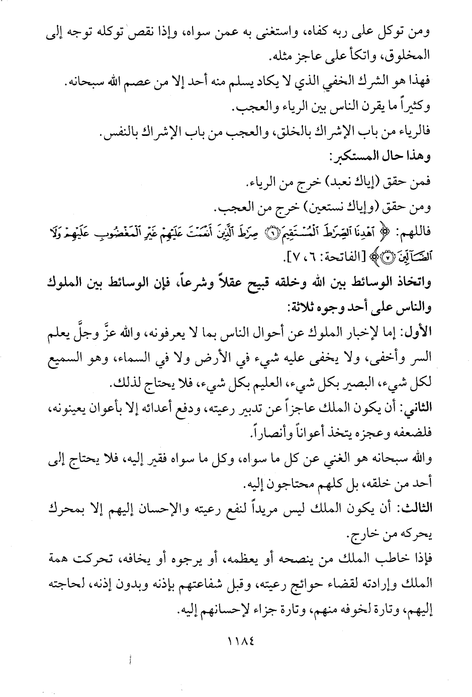 ومن حقق (وإياك نستعين) خرج من العجب.
