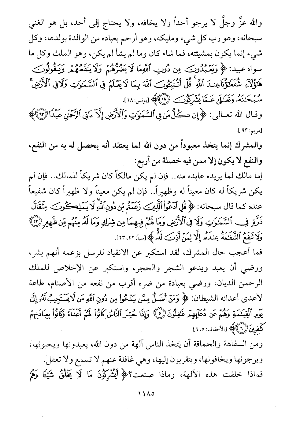 إما مالك لما يريده عابده منه .. فإن لم يكن مالكاً كان شريكاً للمالك .. فإن لم يكن شريكاً له كان معيناً له وظهيراً .. فإن لم يكن معيناً ولا ظهيراً كان شفيعاً عنده كما قال سبحانه: {قُلِ ادْعُوا الَّذِينَ زَعَمْتُمْ مِنْ دُونِ اللَّهِ لَا يَمْلِكُونَ مِثْقَالَ ذَرَّةٍ فِي السَّمَاوَاتِ وَلَا فِي الْأَرْضِ وَمَا لَهُمْ فِيهِمَا مِنْ شِرْكٍ وَمَا لَهُ مِنْهُمْ مِنْ ظَهِيرٍ (22) وَلَا تَنْفَعُ الشَّفَاعَةُ عِنْدَهُ إِلَّا لِمَنْ أَذِنَ لَهُ} [سبأ: 22، 23].