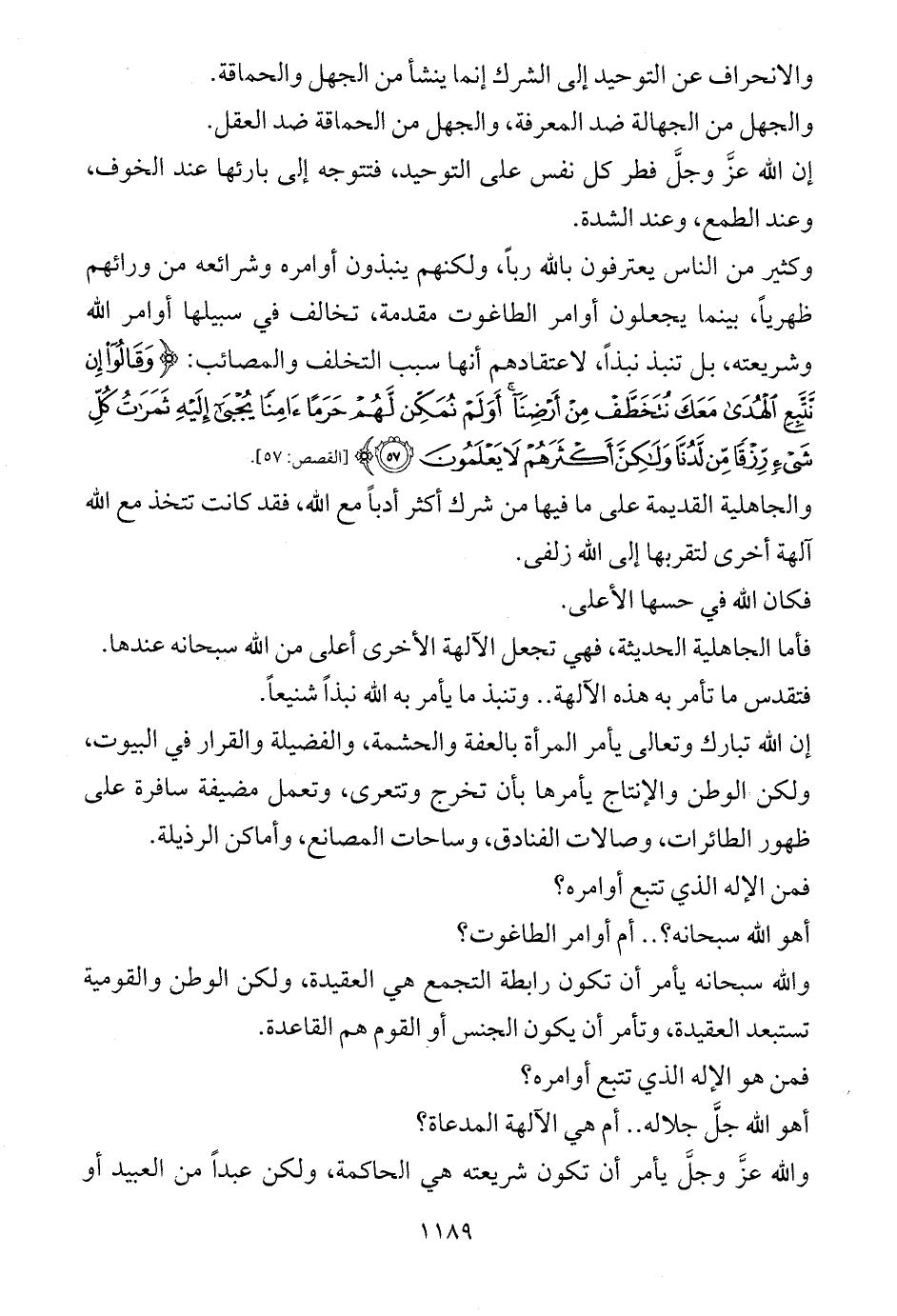 والانحراف عن التوحيد إلى الشرك إنما ينشأ من الجهل والحماقة.
