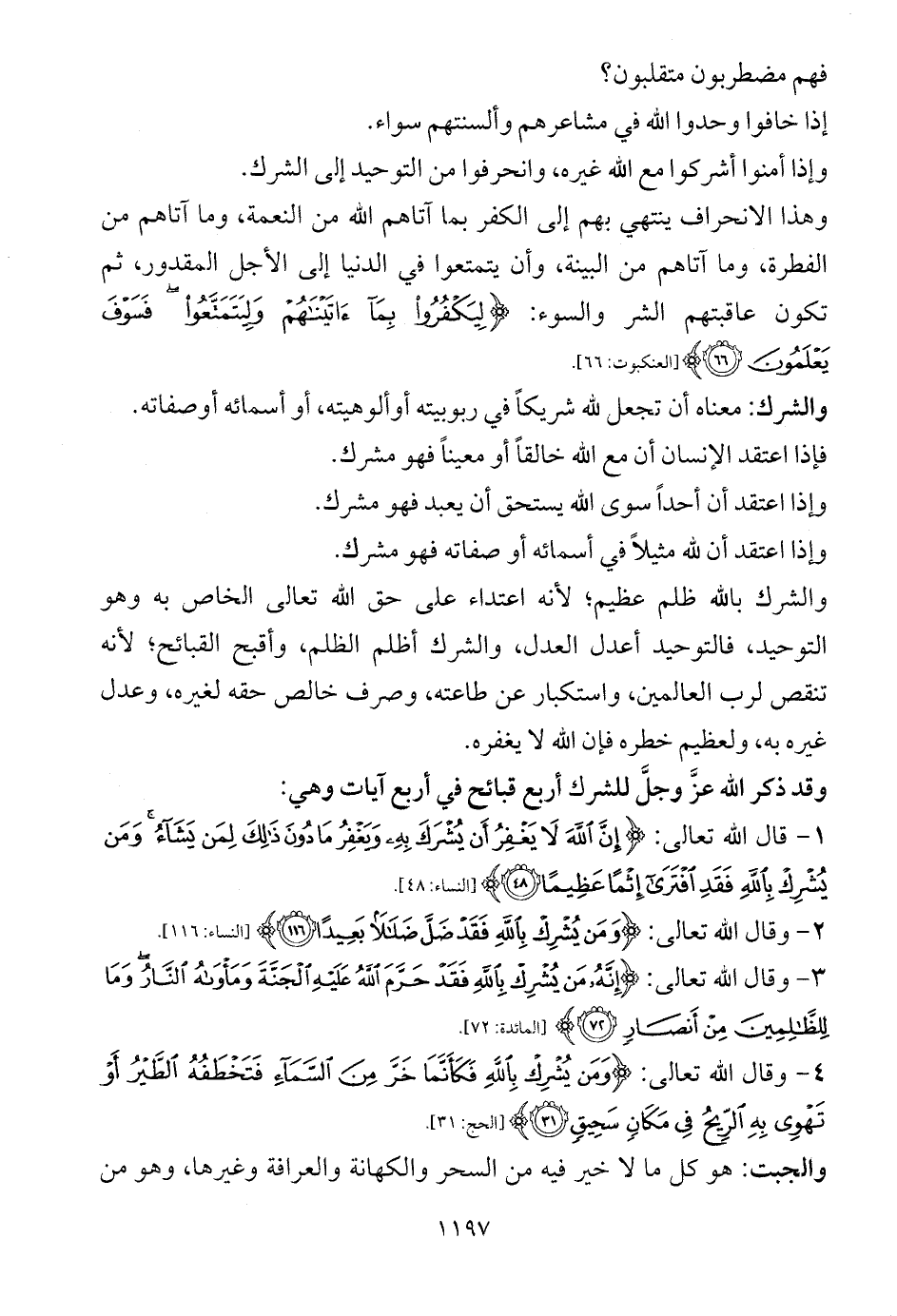 2 - وقال الله تعالى: {وَمَنْ يُشْرِكْ بِاللَّهِ فَقَدْ ضَلَّ ضَلَالًا بَعِيدًا (116)} [النساء: 116].