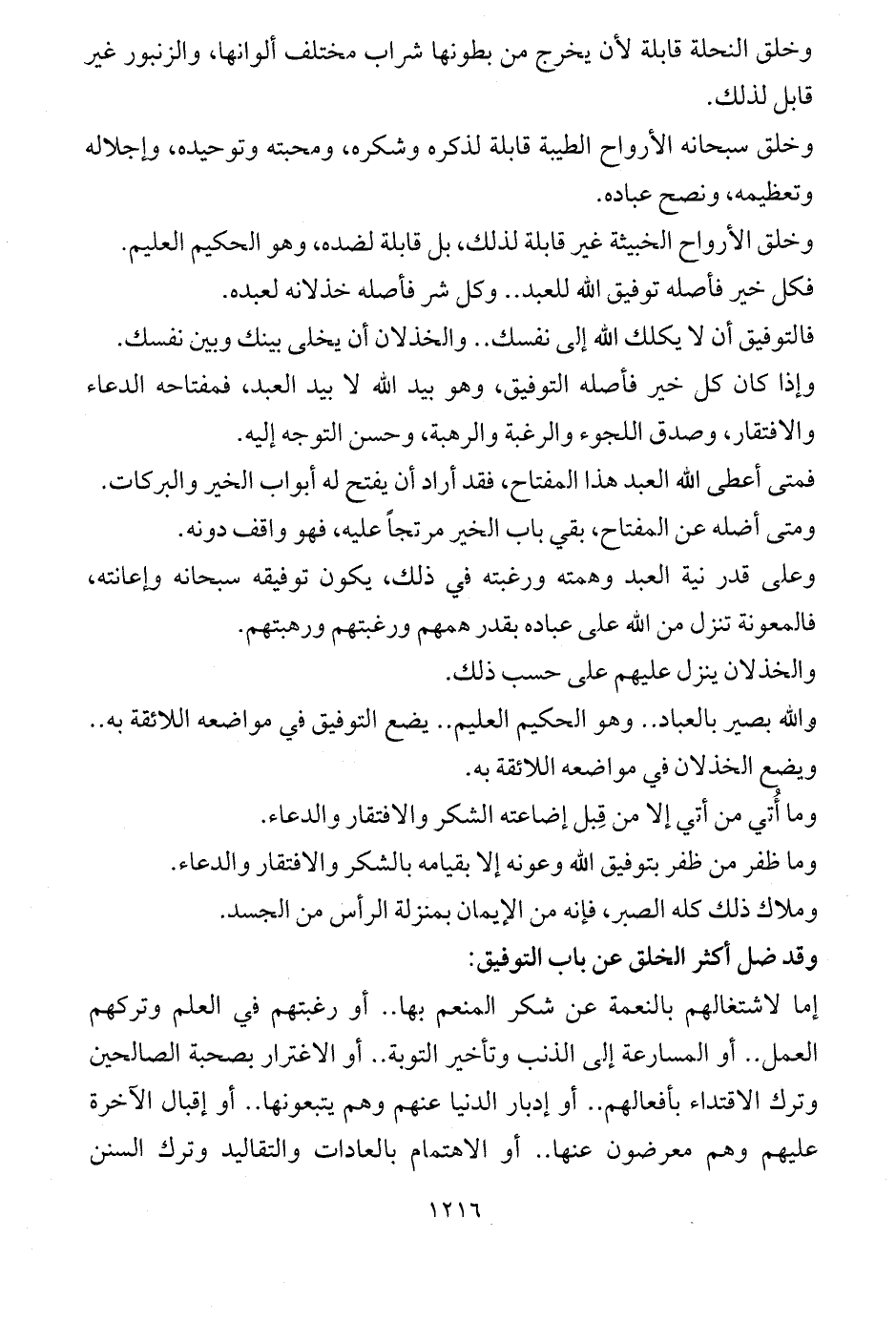 وخلق سبحانه الأرواح الطيبة قابلة لذكره وشكره، ومحبته وتوحيده، وإجلاله وتعظيمه، ونصح عباده.