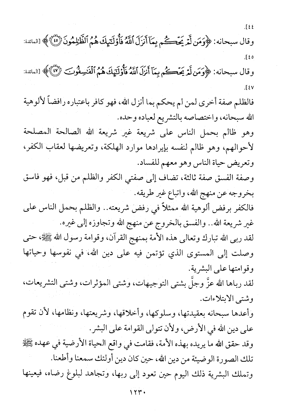 وقال سبحانه: {وَمَنْ لَمْ يَحْكُمْ بِمَا أَنْزَلَ اللَّهُ فَأُولَئِكَ هُمُ الظَّالِمُونَ (45)} [المائدة: 45].