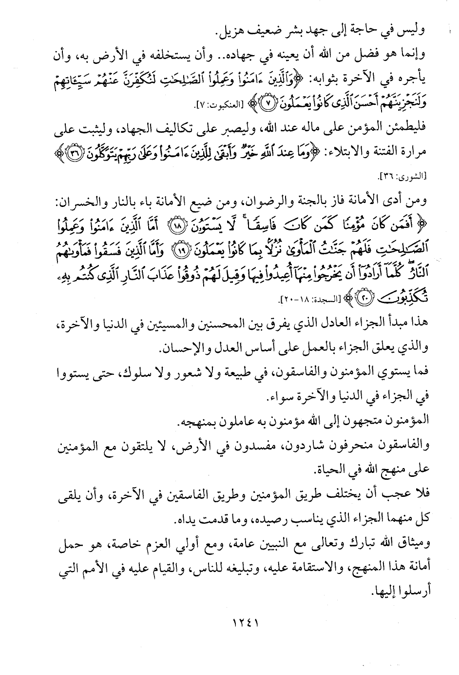 هذا مبدأ الجزاء العادل الذي يفرق بين المحسنين والمسيئين في الدنيا والآخرة، والذي يعلق الجزاء بالعمل على أساس العدل والإحسان.