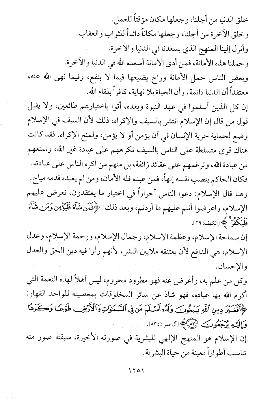إن الإسلام هو المنهج الإلهي للبشرية في صورته الأخيرة، سبقته صور منه تناسب أطواراً معينة من حياة البشرية.