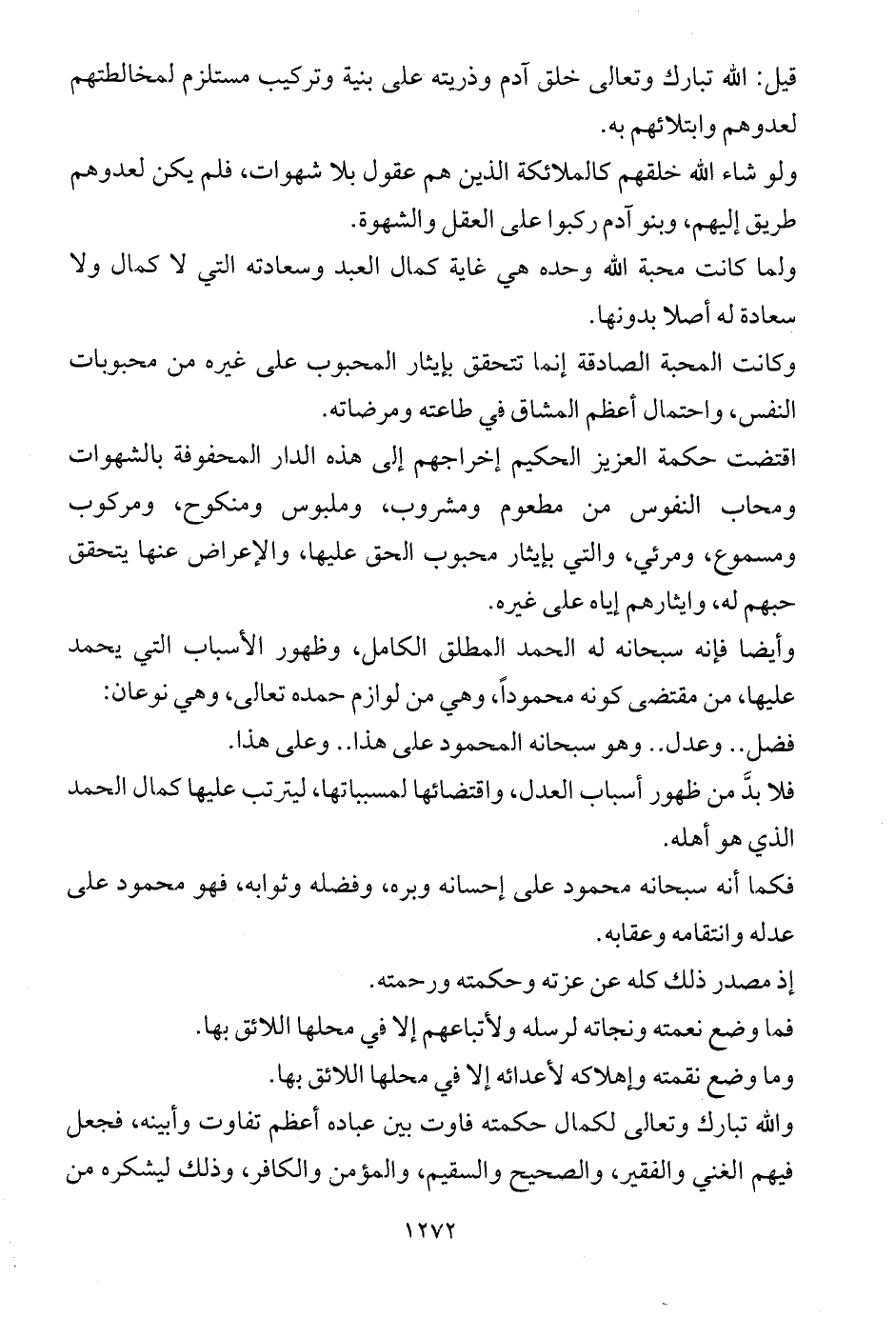 فكما أنه سبحانه محمود على إحسانه وبره، وفضله وثوابه، فهو محمود على عدله وانتقامه وعقابه.