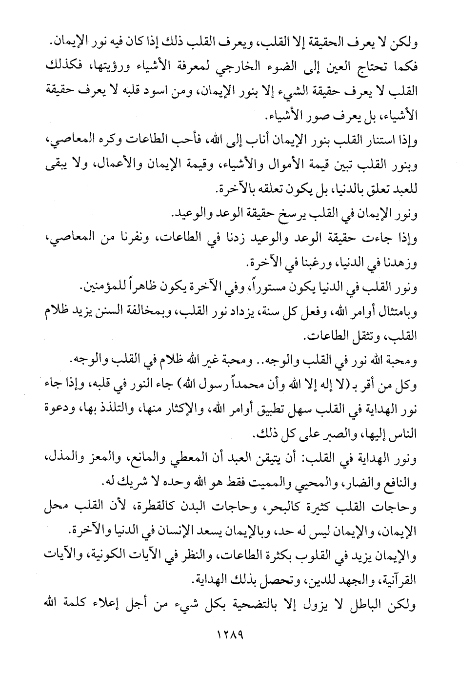 وإذا استنار القلب بنور الإيمان أناب إلى الله، فأحب الطاعات وكره المعاصي، وبنور القلب تبين قيمة الأموال والأشياء، وقيمة الإيمان والأعمال، ولا يبقى للعبد تعلق بالدنيا، بل يكون تعلقه بالآخرة.