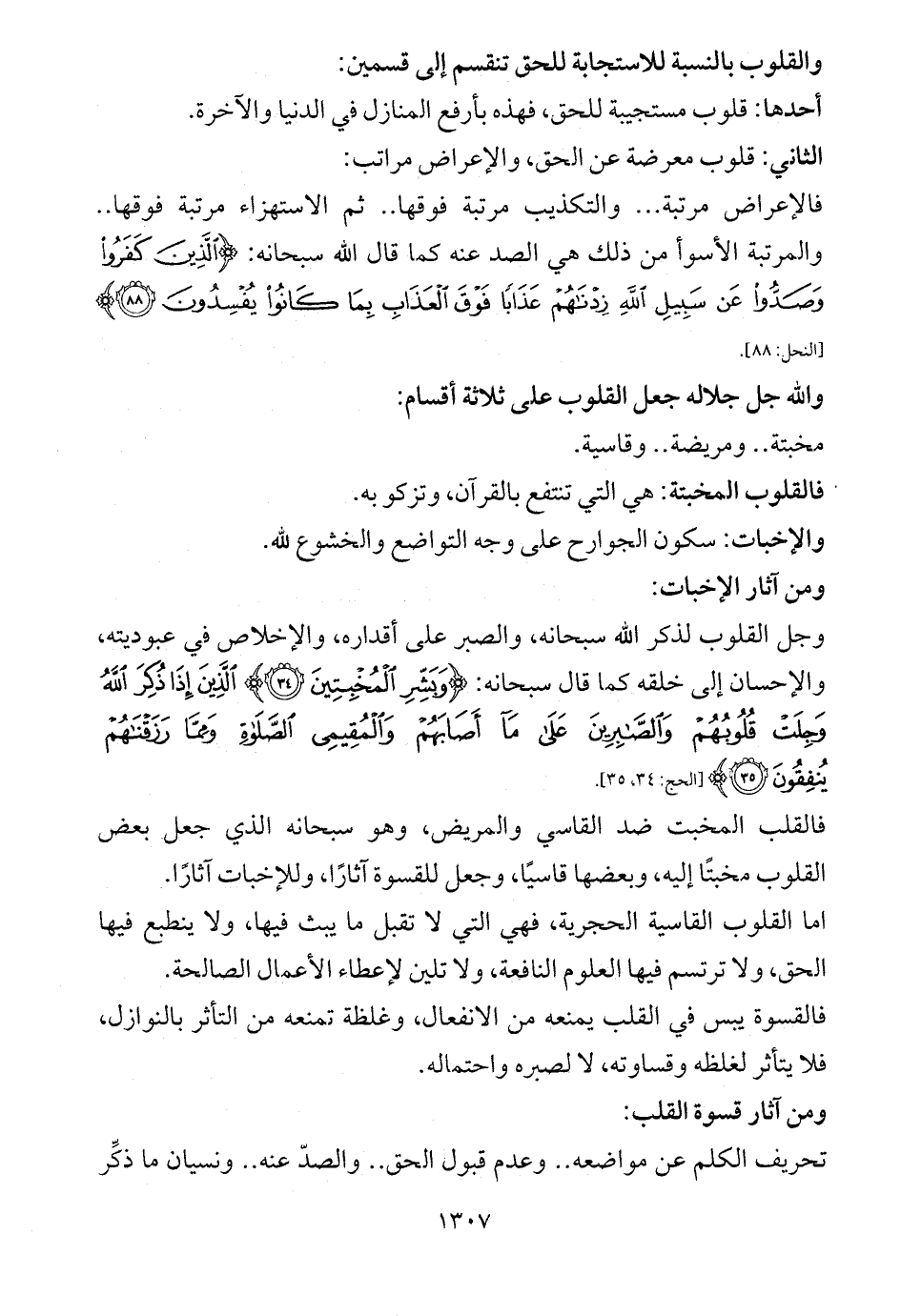 والله جل جلاله جعل القلوب على ثلاثة أقسام: