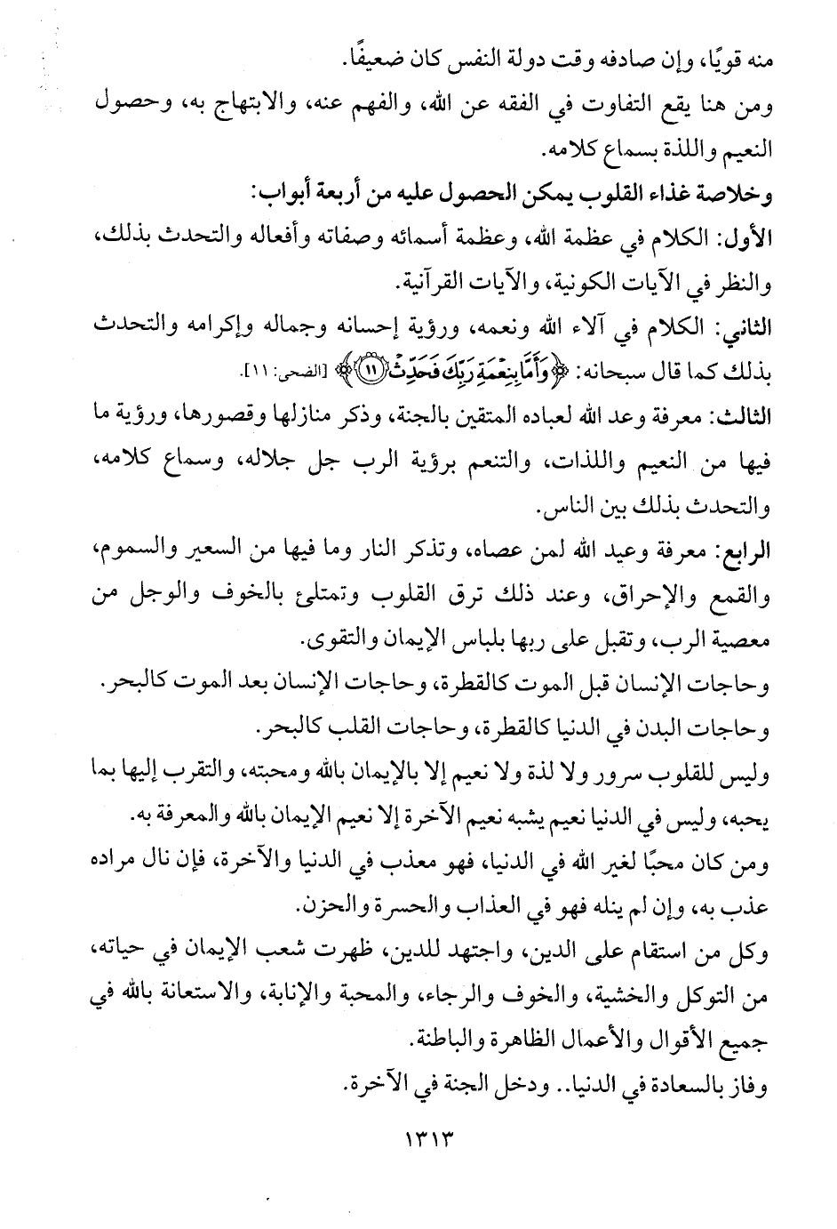وخلاصة غذاء القلوب يمكن الحصول عليه من أربعة أبواب: