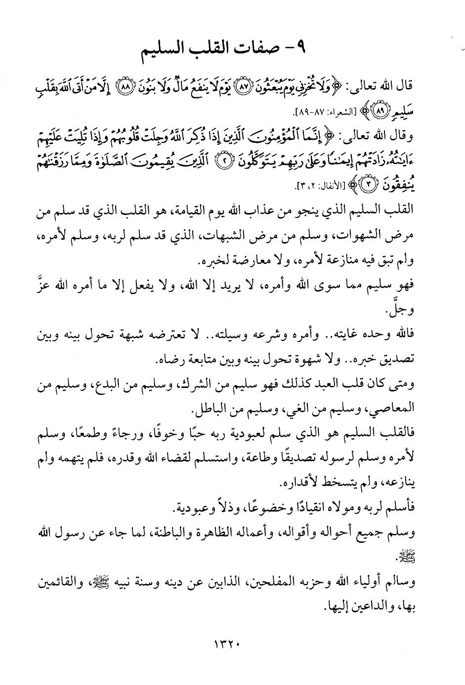 فالقلب السليم هو الذي سلم لعبودية ربه حبًا وخوفًا، ورجاءً وطمعًا، وسلم لأمره وسلم لرسوله تصديقًا وطاعة، واستسلم لقضاء الله وقدره، فلم يتهمه ولم ينازعه، ولم يتسخط لأقداره.