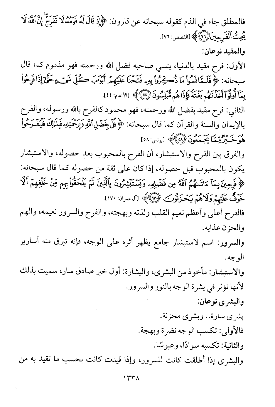 فالفرح أعلى وأعظم نعيم القلب ولذته وبهجته، والفرح والسرور نعيمه، والهم والحزن عذابه.