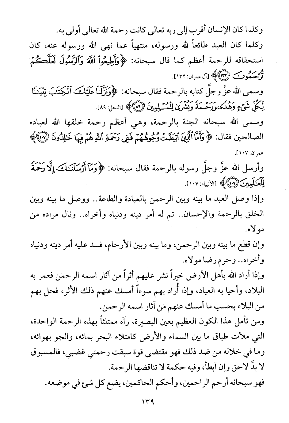 وإذا أراد الله بأهل الأرض خيراً نشر عليهم أثراً من آثار اسمه الرحمن فعمر به البلاد، وأحيا به العباد، وإذا أُراد بهم سوءاً أمسك عنهم ذلك الأثر، فحل بهم من البلاء بحسب ما أمسك عنهم من آثار اسمه الرحمن.