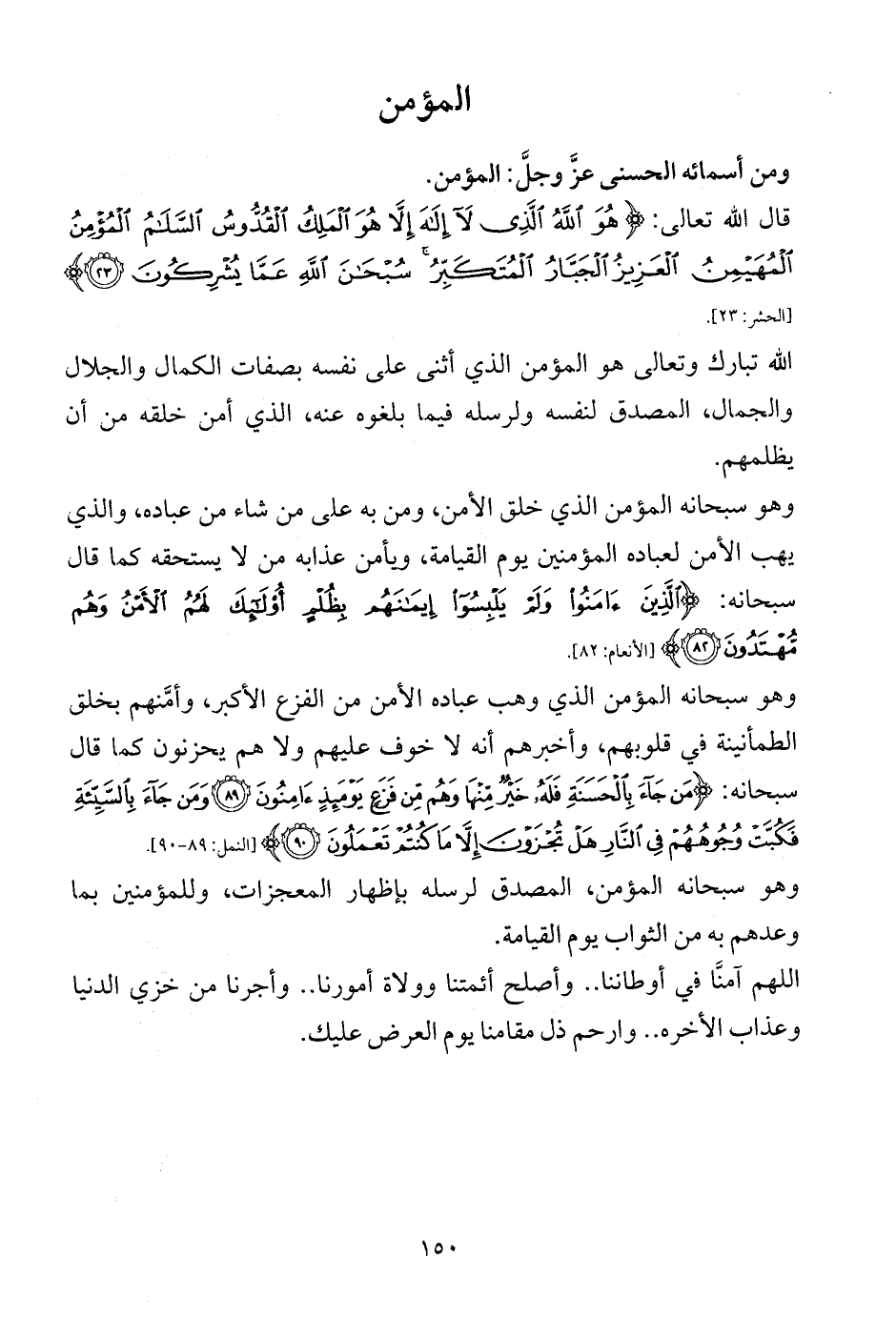 قال الله تعالى: {هُوَ اللَّهُ الَّذِي لَا إِلَهَ إِلَّا هُوَ الْمَلِكُ الْقُدُّوسُ السَّلَامُ الْمُؤْمِنُ الْمُهَيْمِنُ الْعَزِيزُ الْجَبَّارُ الْمُتَكَبِّرُ سُبْحَانَ اللَّهِ عَمَّا يُشْرِكُونَ (23)} ... [الحشر: 23].