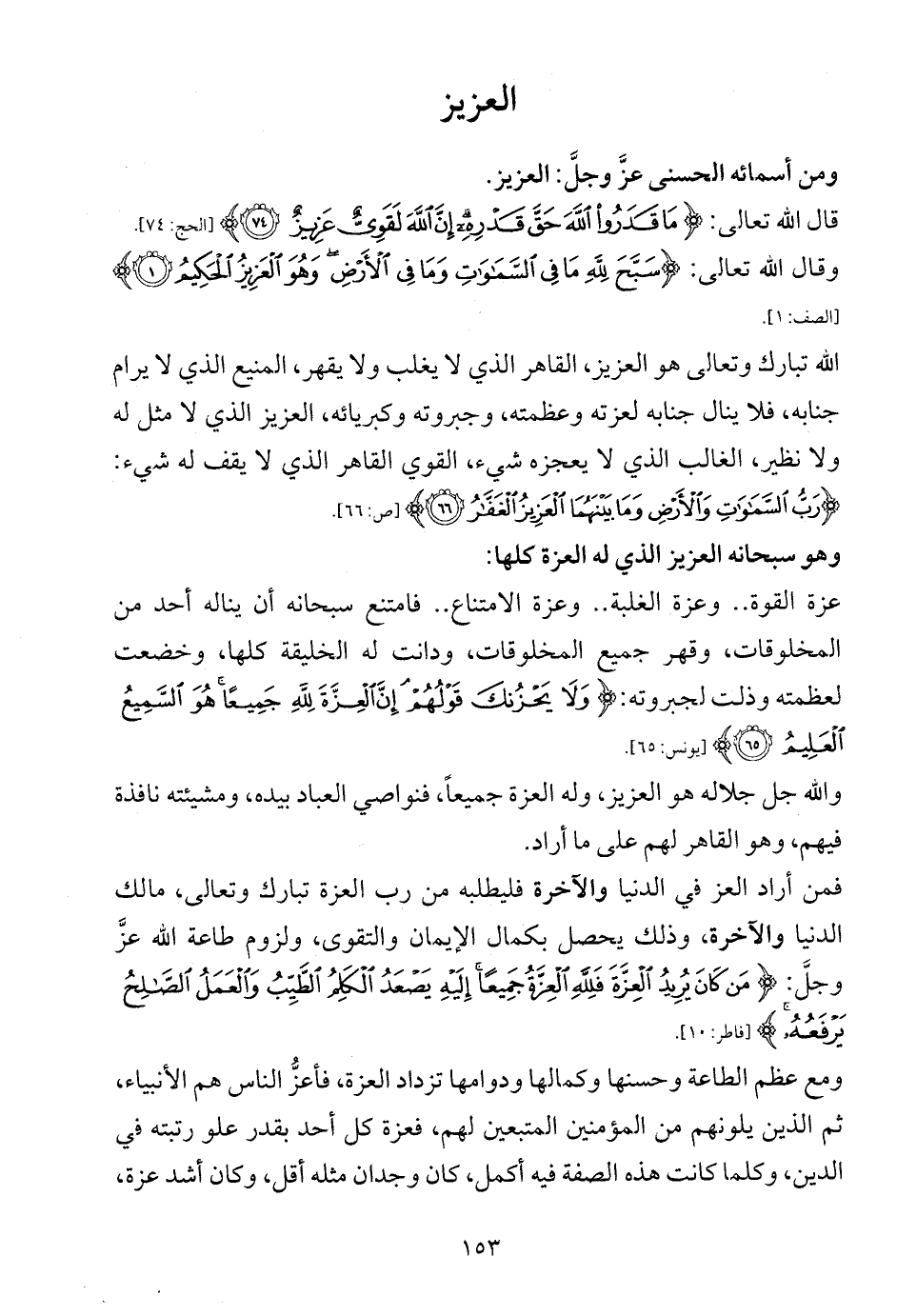 الله تبارك وتعالى هو العزيز، القاهر الذي لا يغلب ولا يقهر، المنيع الذي لا يرام جنابه، فلا ينال جنابه لعزته وعظمته، وجبروته وكبريائه، العزيز الذي لا مثل له ولا نظير، الغالب الذي لا يعجزه شيء، القوي القاهر الذي لا يقف له شيء: {رَبُّ السَّمَاوَاتِ وَالْأَرْضِ وَمَا بَيْنَهُمَا الْعَزِيزُ الْغَفَّارُ (66)} [ص: 66].
