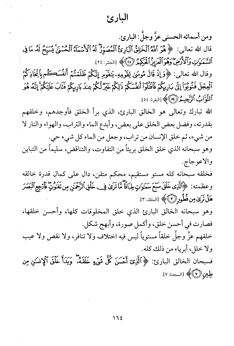 قال الله تعالى: {هُوَ اللَّهُ الْخَالِقُ الْبَارِئُ الْمُصَوِّرُ لَهُ الْأَسْمَاءُ الْحُسْنَى يُسَبِّحُ لَهُ مَا فِي السَّمَاوَاتِ وَالْأَرْضِ وَهُوَ الْعَزِيزُ الْحَكِيمُ (24)} ... [الحشر: 24].