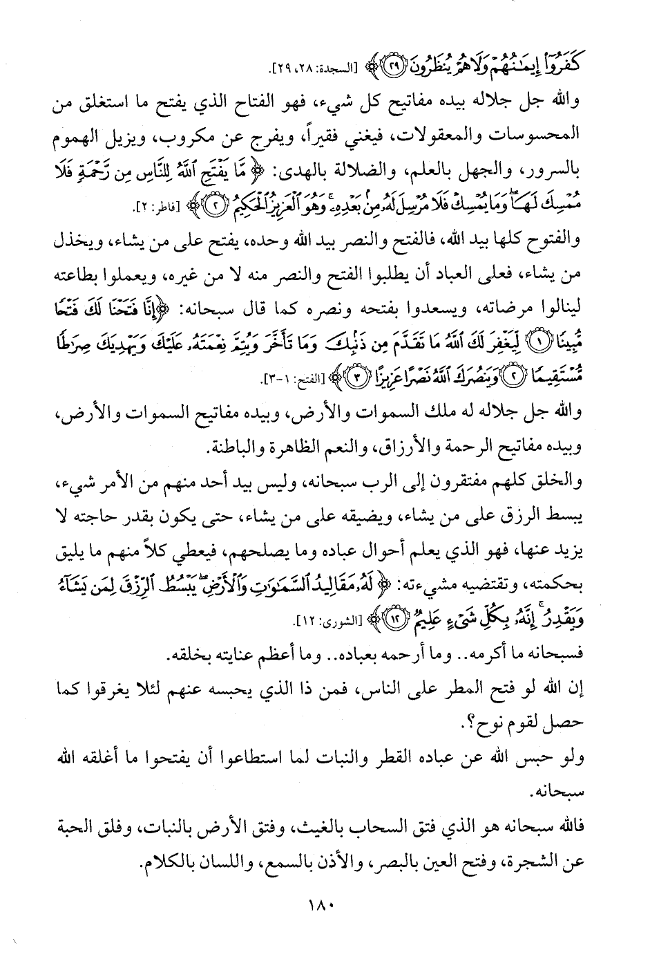 والفتوح كلها بيد الله، فالفتح والنصر بيد الله وحده، يفتح على من يشاء، ويخذل من يشاء، فعلى العباد أن يطلبوا الفتح والنصر منه لا من غيره، ويعملوا بطاعته لينالوا مرضاته، ويسعدوا بفتحه ونصره كما قال سبحانه: {إِنَّا فَتَحْنَا لَكَ فَتْحًا مُبِينًا (1) لِيَغْفِرَ لَكَ اللَّهُ مَا تَقَدَّمَ مِنْ ذَنْبِكَ وَمَا تَأَخَّرَ وَيُتِمَّ نِعْمَتَهُ عَلَيْكَ وَيَهْدِيَكَ صِرَاطًا مُسْتَقِيمًا (2) وَيَنْصُرَكَ اللَّهُ نَصْرًا عَزِيزًا (3)} [الفتح: 1 - 3].