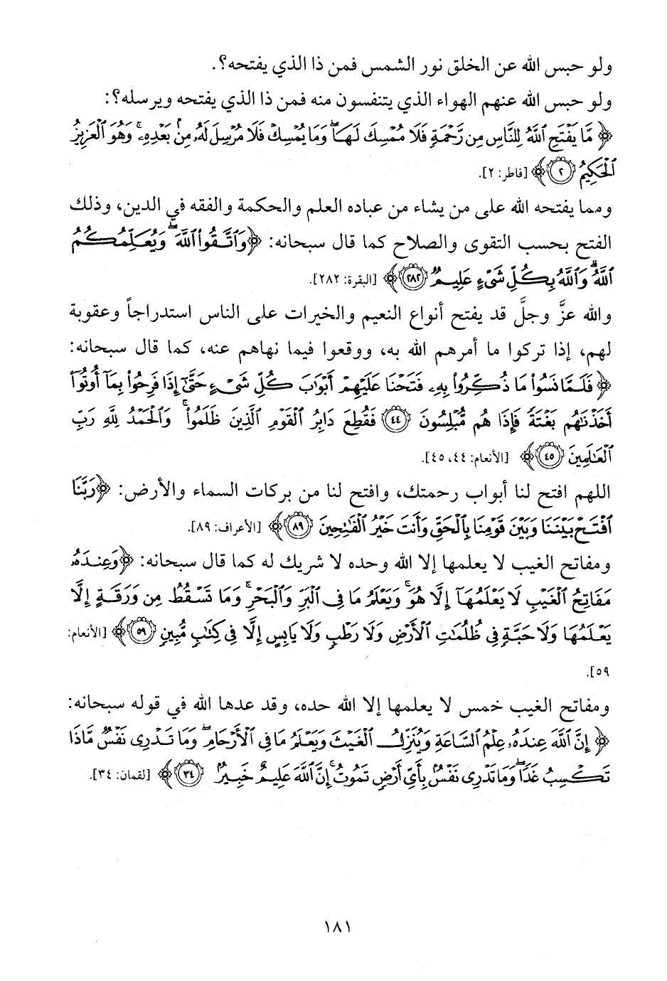 ولو حبس الله عن الخلق نور الشمس فمن ذا الذي يفتحه؟.
