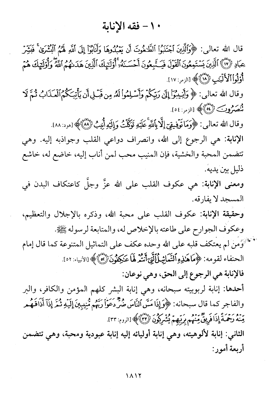 ومعنى الإنابة: هي عكوف القلب على الله عزَّ وجلَّ كاعتكاف البدن في المسجد لا يفارقه.