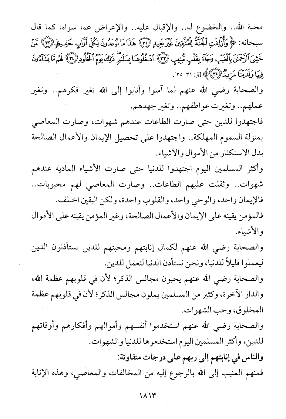 والناس في إنابتهم إلى ربهم على درجات متفاوتة: