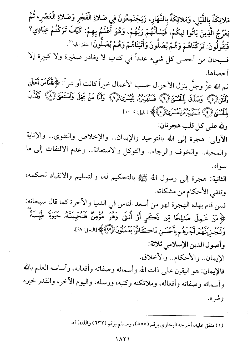 الأولى: هجرة إلى الله بالتوحيد والإيمان .. والإخلاص والتقوى .. والإنابة والمحبة .. والخوف والرجاء .. والتوكل والاستعانة .. وعدم الالتفات إلى ما سواه.