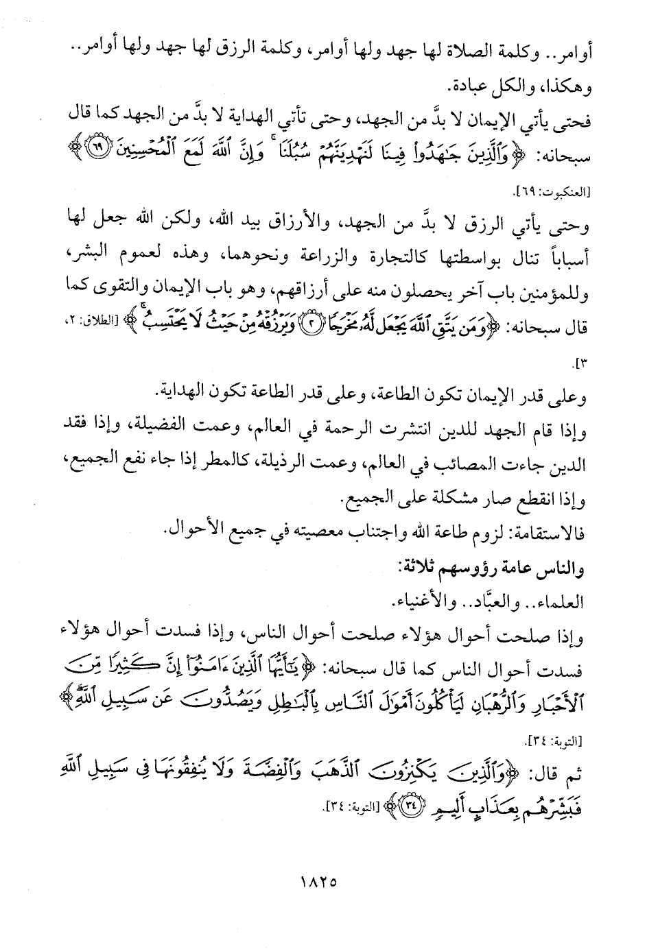وإذا صلحت أحوال هؤلاء صلحت أحوال الناس، وإذا فسدت أحوال هؤلاء فسدت أحوال الناس كما قال سبحانه: {يَاأَيُّهَا الَّذِينَ آمَنُوا إِنَّ كَثِيرًا مِنَ الْأَحْبَارِ وَالرُّهْبَانِ لَيَأْكُلُونَ أَمْوَالَ النَّاسِ بِالْبَاطِلِ وَيَصُدُّونَ عَنْ سَبِيلِ اللَّهِ} [التوبة: 34].