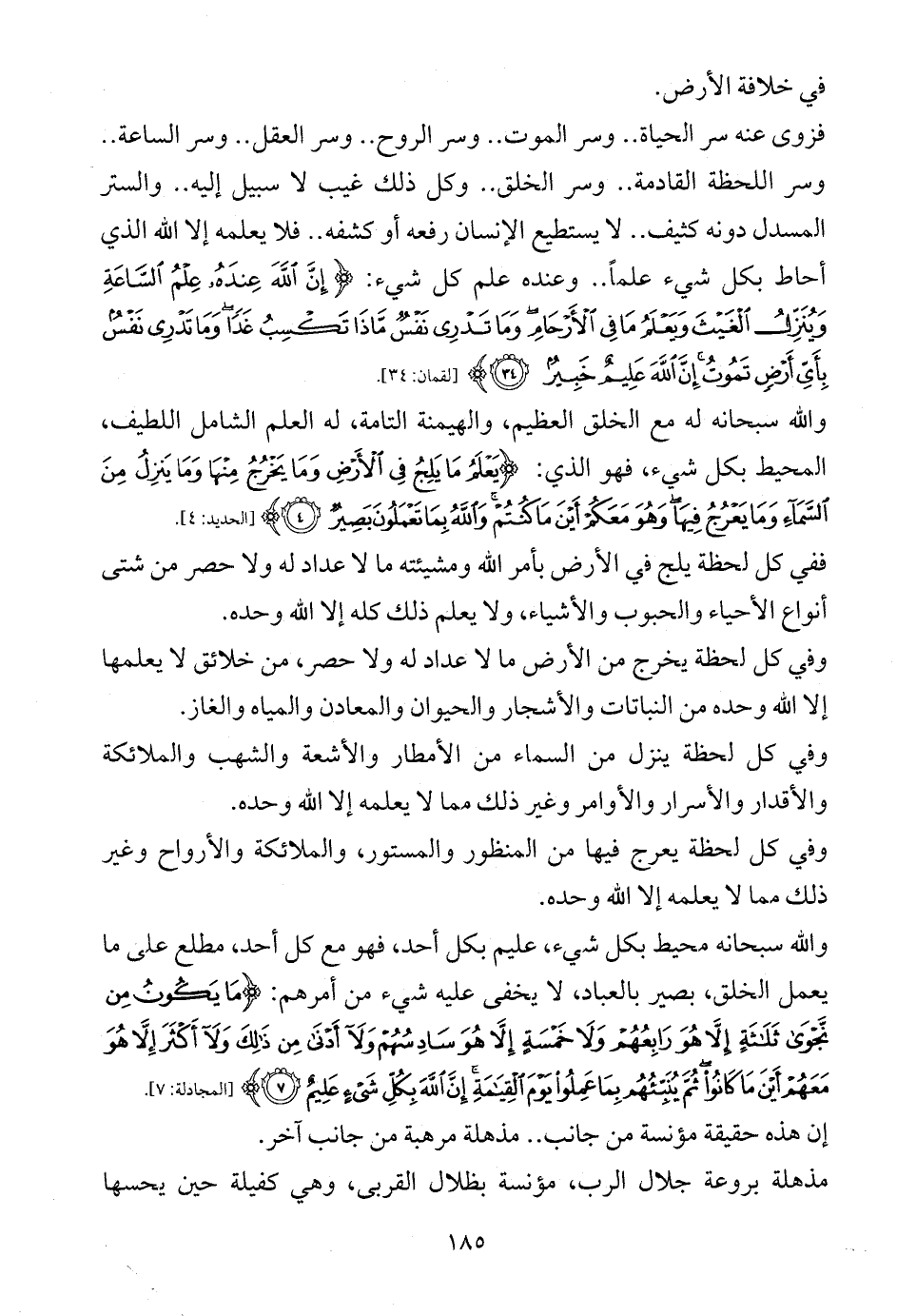 فزوى عنه سر الحياة .. وسر الموت .. وسر الروح .. وسر العقل .. وسر الساعة .. وسر اللحظة القادمة .. وسر الخلق .. وكل ذلك غيب لا سبيل إليه .. والستر المسدل دونه كثيف .. لا يستطيع الإنسان رفعه أو كشفه .. فلا يعلمه إلا الله الذي أحاط بكل شيء علماً .. وعنده علم كل شيء: {إِنَّ اللَّهَ عِنْدَهُ عِلْمُ السَّاعَةِ وَيُنَزِّلُ الْغَيْثَ وَيَعْلَمُ مَا فِي الْأَرْحَامِ وَمَا تَدْرِي نَفْسٌ مَاذَا تَكْسِبُ غَدًا وَمَا تَدْرِي نَفْسٌ بِأَيِّ أَرْضٍ تَمُوتُ إِنَّ اللَّهَ عَلِيمٌ خَبِيرٌ (34)} ... [لقمان: 34].