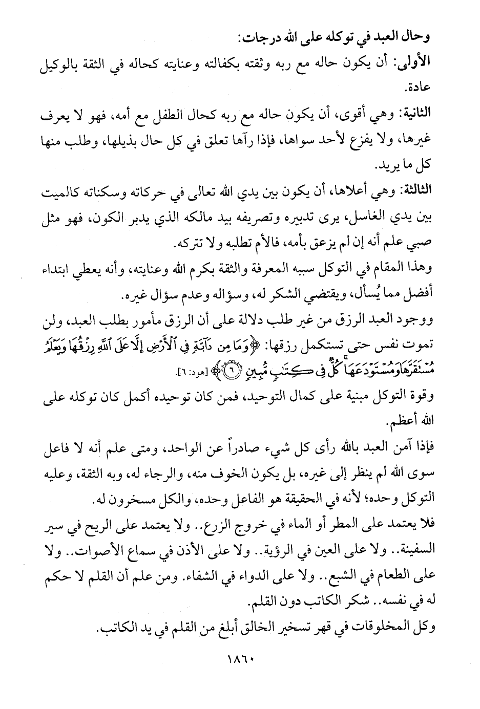 الأولى: أن يكون حاله مع ربه وثقته بكفالته وعنايته كحاله في الثقة بالوكيل عادة.