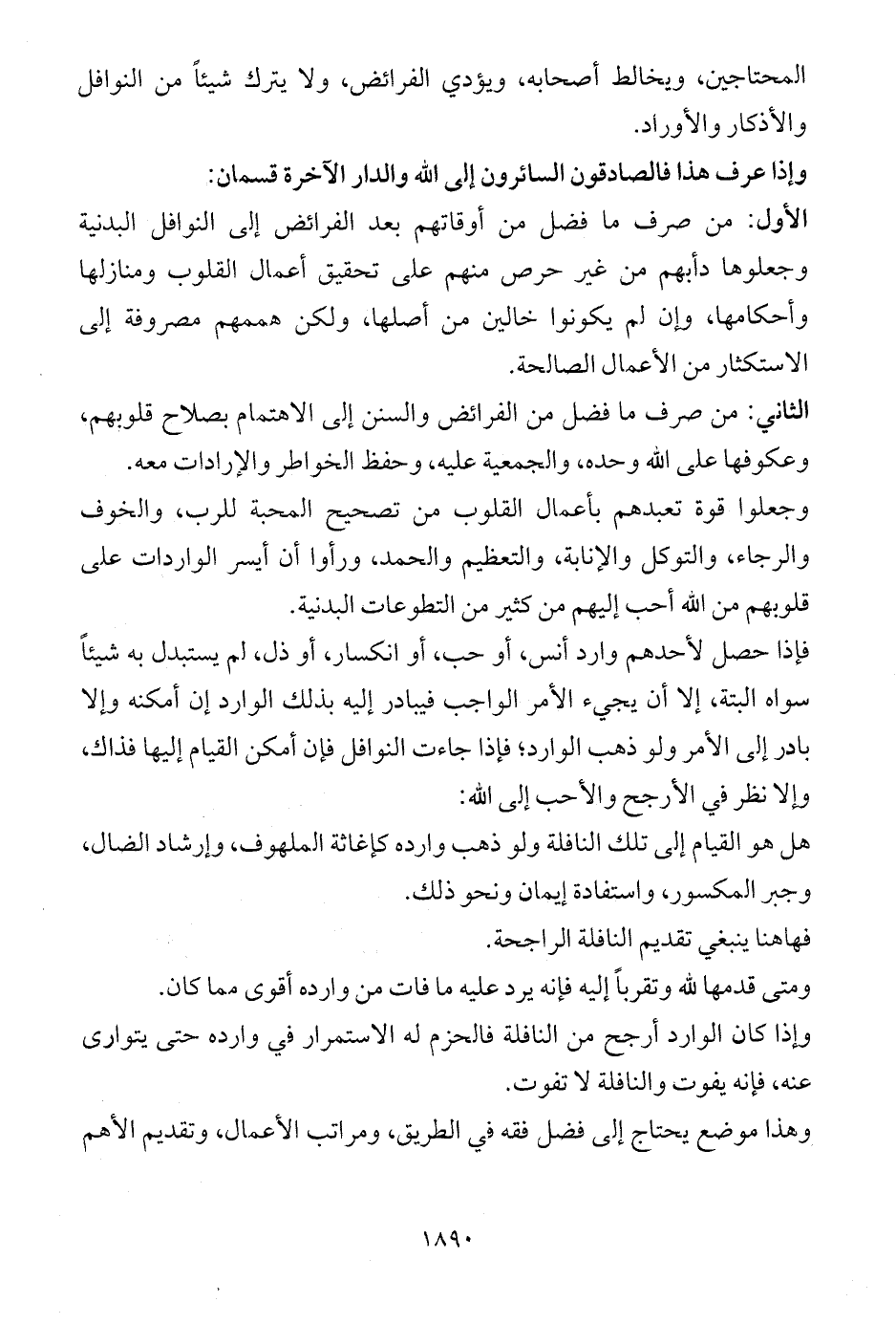 الثاني: من صرف ما فضل من الفرائض والسنن إلى الاهتمام بصلاح قلوبهم، وعكوفها على الله وحده، والجمعية عليه، وحفظ الخواطر والإرادات معه.