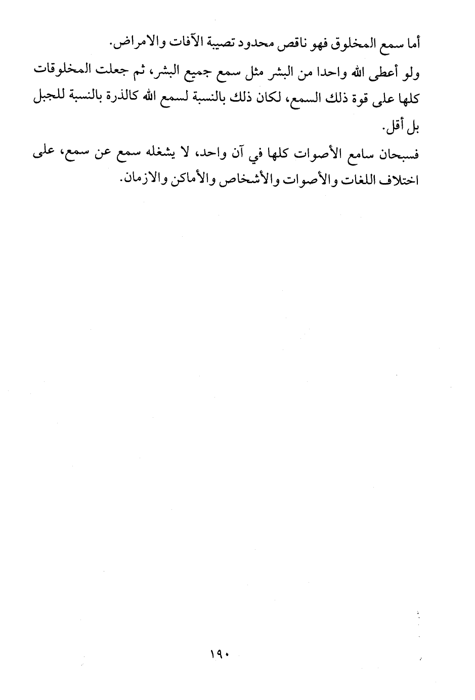 أما سمع المخلوق فهو ناقص محدود تصيبة الآفات والامراض.