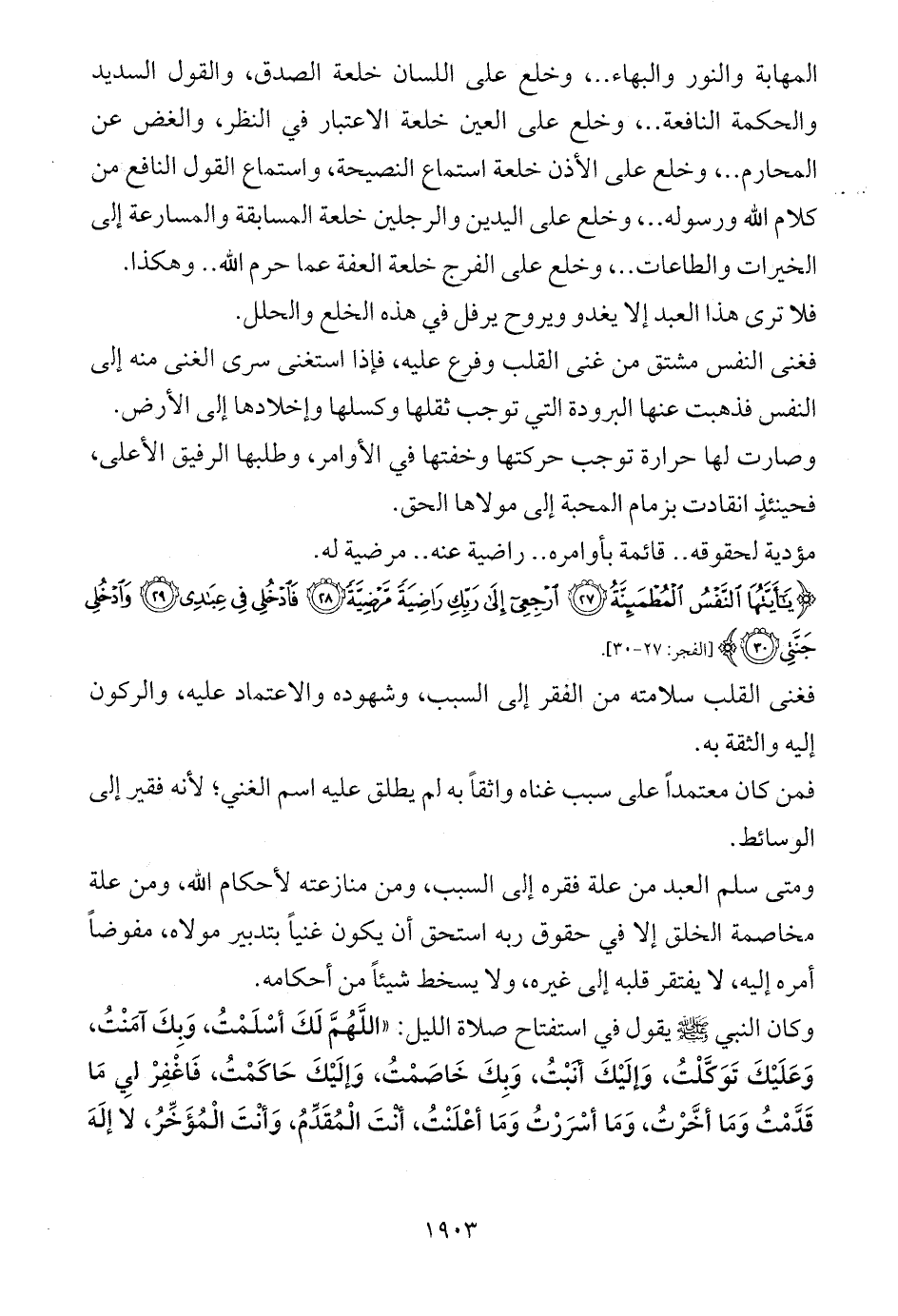 {يَاأَيَّتُهَا النَّفْسُ الْمُطْمَئِنَّةُ (27) ارْجِعِي إِلَى رَبِّكِ رَاضِيَةً مَرْضِيَّةً (28) فَادْخُلِي فِي عِبَادِي (29) وَادْخُلِي جَنَّتِي (30)} [الفجر: 27 - 30].