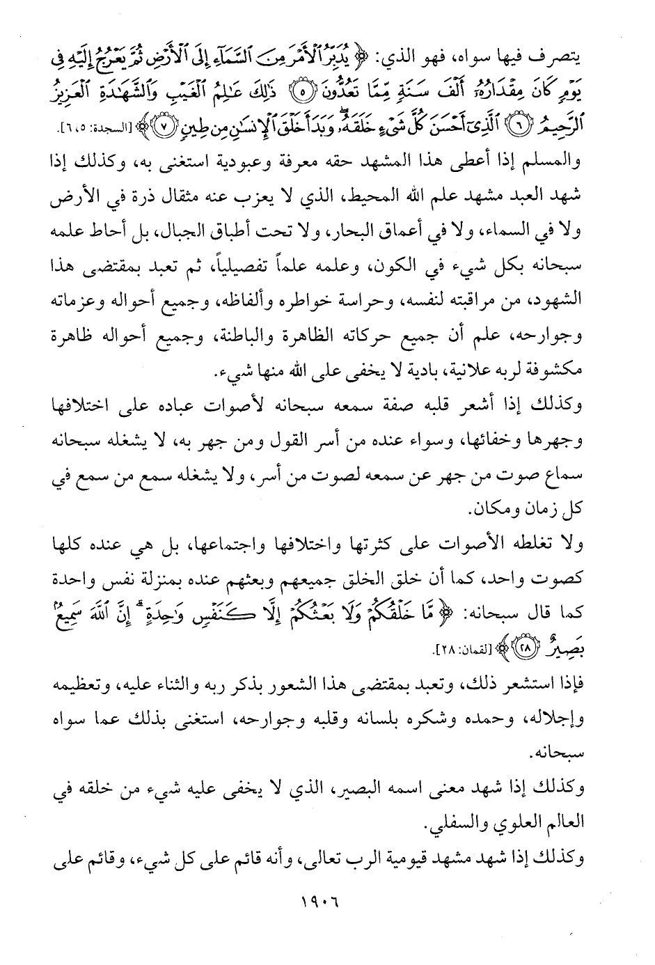 وكذلك إذا شهد معنى اسمه البصير، الذي لا يخفى عليه شيء من خلقه في العالم العلوي والسفلي.