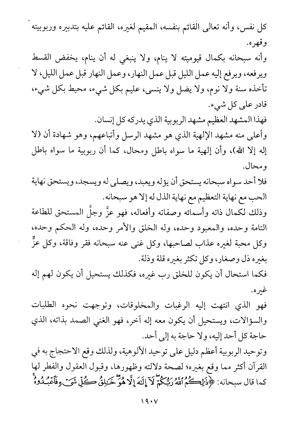 فهو الذي انتهت إليه الرغبات والمخلوقات، وتوجهت نحوه الطلبات والسؤالات، ويستحيل أن يكون معه إله آخر، فهو الغني الصمد بذاته، الذي حاجة كل أحد إليه، ولا حاجة به إلى أحد.