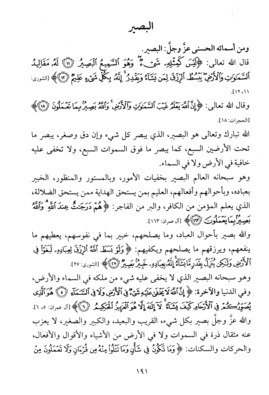 قال الله تعالى: {لَيْسَ كَمِثْلِهِ شَيْءٌ وَهُوَ السَّمِيعُ الْبَصِيرُ (11) لَهُ مَقَالِيدُ السَّمَاوَاتِ وَالْأَرْضِ يَبْسُطُ الرِّزْقَ لِمَنْ يَشَاءُ وَيَقْدِرُ إِنَّهُ بِكُلِّ شَيْءٍ عَلِيمٌ (12)} [الشورى: 11، 12].